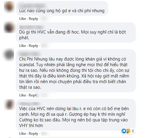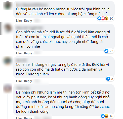 Nhưng bên cạnh đó, rất nhiều người đã lại thông cảm cho Hồ Văn Cường khi anh còn “trẻ người non dạ”, đi tin lời kẻ xấu dụ dỗ. Một bộ phận người hâm mộ cũng đứng về phía Phi Nhung, quyết tin tưởng nữ ca sĩ trong lùm xùm này đến cùng.
