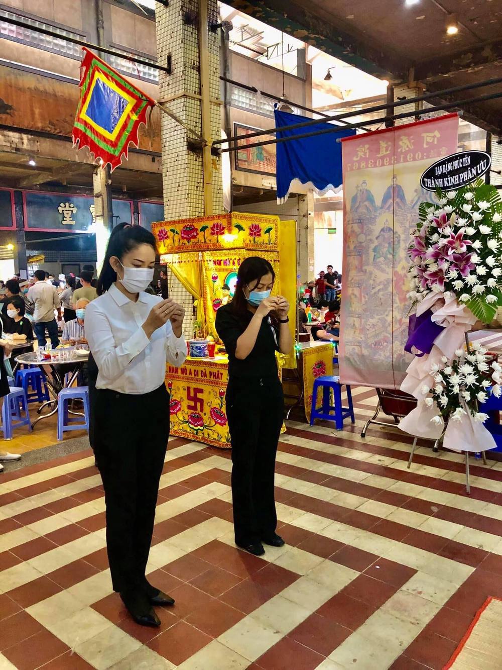 Nhiều vòng hoa đã được gửi đến nhà tang lễ, cùng với đó là đồng nghiệp, bạn bè thân thiết cũng đến để thắp nén nhang cho nữ biên tập viên. Mọi người khi đến đều nghiêm túc giữ khoảng cách, rửa tay sát khuẩn, đeo khẩu trang an toàn. Thành Lộc cũng là một trong những nghệ sĩ đến đám tang của BTV Cẩm Liên trưa ngày 12/6, anh thắp nhang cho cố đồng nghiệp, ánh mắt không giấu khỏi sự tiếc thương.