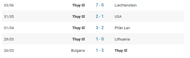 Kết quả gần đây của Thụy Sĩ