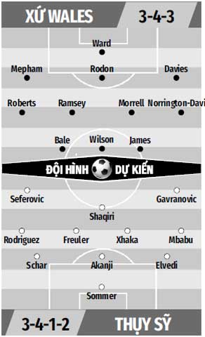 Xứ Wales: Ward, Davies, Rodon, Mepham, Nnorrington-Davies, Morrell, Ramsey, Roberts, James, Wilson, Bale.