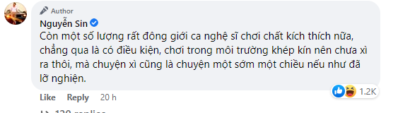 Trước đó, Nguyễn Sin vừa có bài đăng nhắc về chuyện các nghệ sĩ có lối sống lệch lạc, còn trực tiếp nhắc tên một số sao Việt.