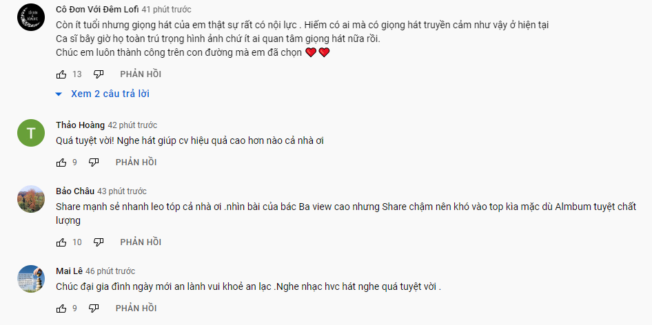 Dưới clip, rất nhiều khán giả đã gửi lời chúc mừng và ngưỡng mộ tới Hồ Văn Cường. Bên cạnh đó, người hâm mộ cũng gửi lời cảm ơn đến danh ca Ngọc Sơn và Bầu Thụy, 2 nhân vật đặc biệt đã nâng đỡ, chỉ bảo nam ca sĩ trẻ.