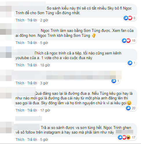 Chính phát ngôn này cũng khiến Ngọc Trinh phải đi “gánh họa thay” khi bị người hâm mộ quay lưng, hủy theo dõi hàng loạt trên Instagram. Nhiều người cho rằng Vũ Khắc Tiệp đang so sánh khập khiễng khi Sơn Tùng, Ngọc Trinh và Chi Pu đều hoạt động trong những lĩnh vực khác nhau.
