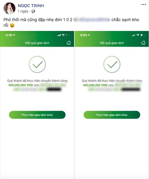 Thời gian gần đây, ngoài tham gia tích cực vào các sự kiện giải trí, Ngọc Trinh còn dành thời gian để phát triển công ty kinh doanh riêng và tận hưởng cuộc sống giàu có. Mới đây, người đẹp còn tự hào khi tiết lộ số tiền “khủng” có thể kiếm được chỉ trong vòng 1 ngày.