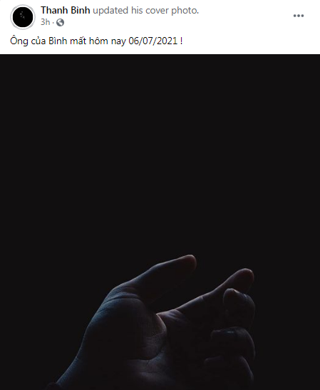 Cách đây ít giờ, nam diễn viên Thanh Bình bất ngờ thay đổi ảnh đại diện sang màu đen, thông báo tin tang sự trên trang cá nhân khiến CĐM vô cùng xôn xao: “Ông của Bình mất hôm nay 06/07/2021!”.