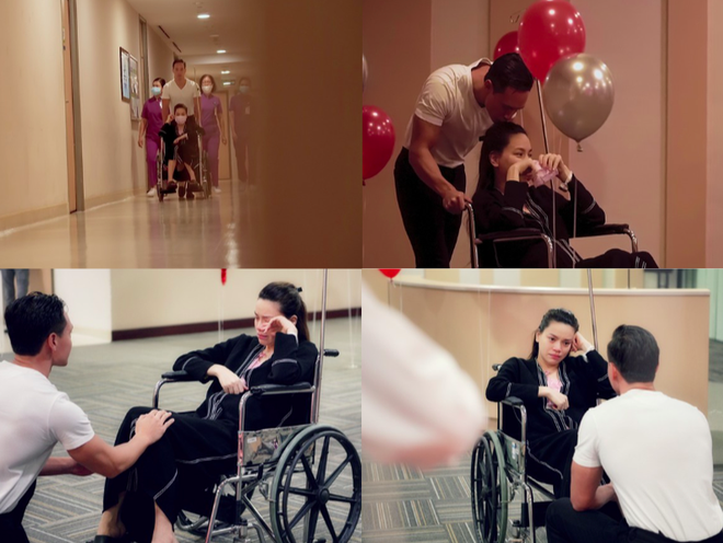 Hạnh phúc càng ngập tràn khi chỉ 2 ngày sau sinh, Hồ Ngọc Hà bất ngờ được Kim Lý cầu hôn ngay tại bệnh viện. Anh đưa cô vào một căn phòng được chuẩn bị riêng với bong bóng và ngỏ lời cầu hôn. Quá ngạc nhiên và hạnh phúc, nữ ca sĩ đã bật khóc khi được bạn trai trao nhẫn.
