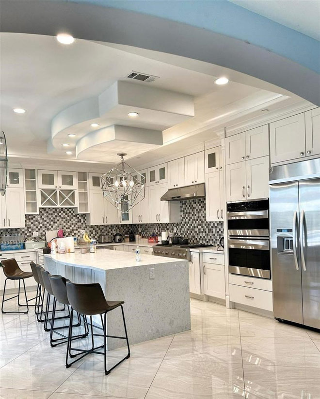 Lần này, Lệ Quyên chụp các ngóc ngách khác nhau trong căn nhà. Không gian cao rộng và kiến trúc cầu kì, nội thất sang chảnh khiến nhiều người phải trầm trồ. Được biết, các đồ trang trí trong nhà đều được đích thân nữ ca sĩ chọn lựa, mua sắm.