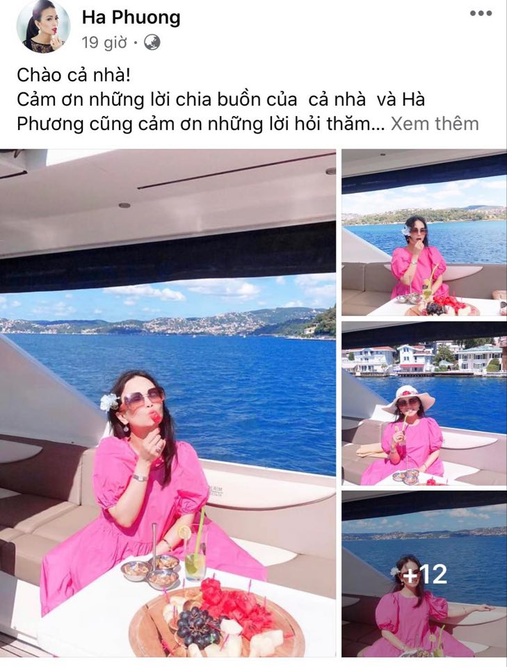 Nhằm thay đổi không khí, Hà Phương cùng gia đình đã có chuyến du lịch đến thăm một số đất nước. Nữ ca sĩ hào hứng chia sẻ hình ảnh đi đến thành phố Istanbul, Thổ Nhĩ Kỳ. Đặc biệt, phương tiện du lịch của gia đình Hà Phương là một chiếc du thuyền triệu đô, có thể thấy đã được bao trọn tất cả.