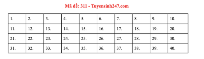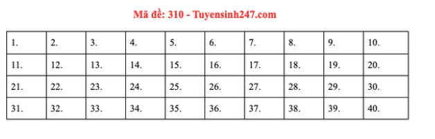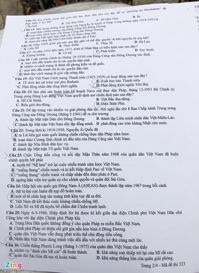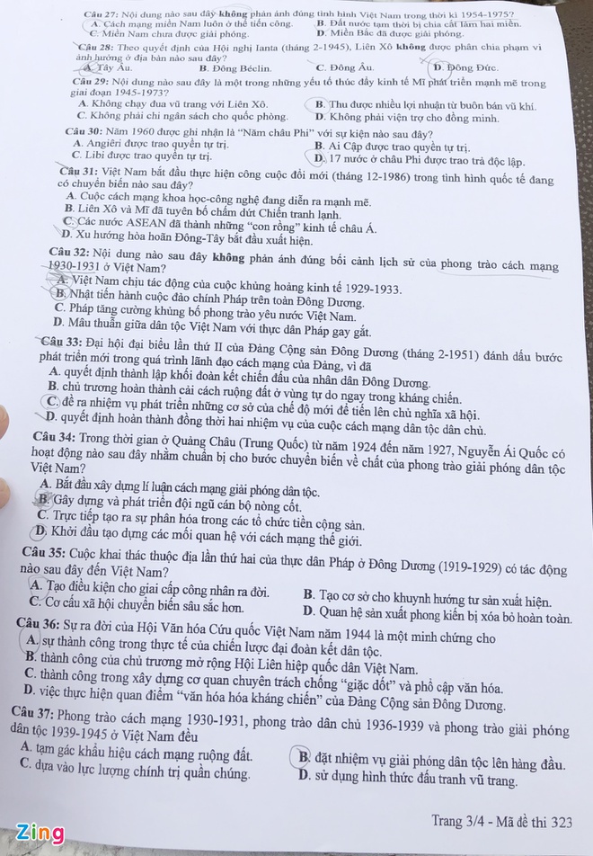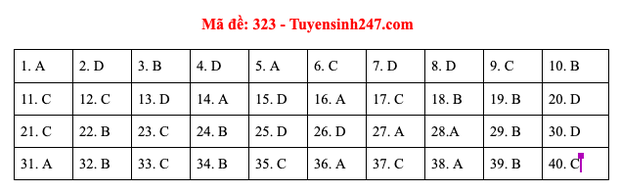 Đáp án môn Lịch Sử, mã đề 323 (Tham khảo)