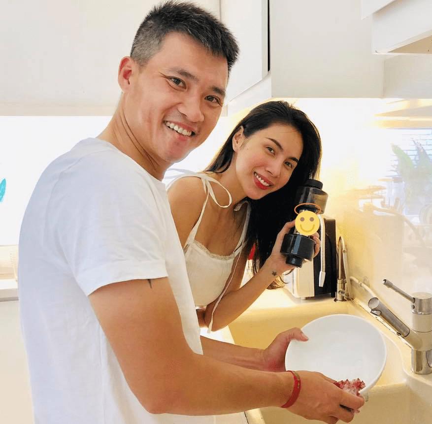 Đến nay, Thủy Tiên cũng dần lui về hậu trường, tập trung chăm sóc tổ ấm nhỏ. Người đẹp đích thân vào bếp nấu nướng cho chồng con, chăm lo sức khỏe cho cả gia đình.
