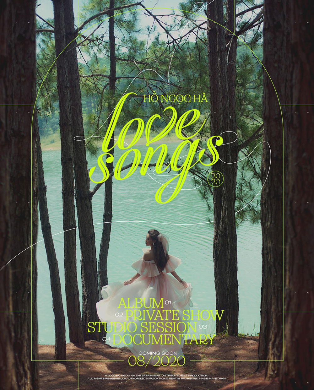 Love Songs 2020 là dự án âm nhạc lớn trong năm nay của Hồ Ngọc Hà, gồm: một album, chuỗi minishow phát sóng hàng tuần, chuỗi video phòng thu và một phim tài liệu. Riêng album gồm 10 ca khúc mới được hợp tác với các nhạc sĩ hàng đầu hiện nay: Đỗ Hiếu, Nguyễn Hồng Thuận, Nguyễn Minh Cường...