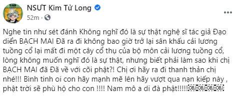 Cách đây ít phút, NSƯT Hữu Quốc bất ngờ đăng tải loạt trang thái buồn bã báo tin tang sự của gia đình Bình Tinh. Cụ thể, nghệ sĩ Bạch Mai, mẹ ruột của Bình Tinh đã qua đời sau thời gian dài chống chọi bệnh tật.