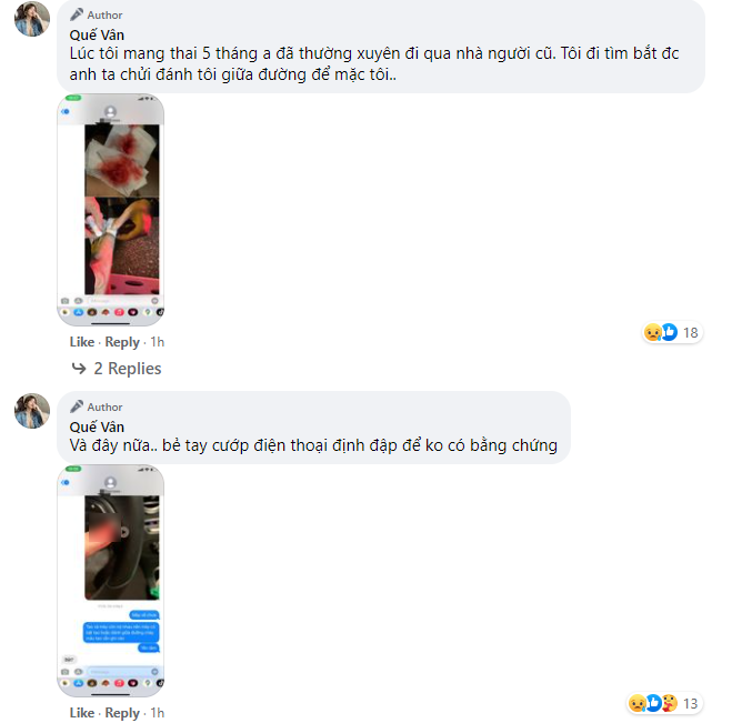 Quế Vân còn cay đắng cho biết đã bị đánh đập giữa đường vì đi theo “bắt quả tang” bạn trai đến nhà người cũ. Cô còn khẳng định không hề muốn “trói bầu” như lời người khác nói, vì người bạn trai này không hề có tiền và địa vị gì.
