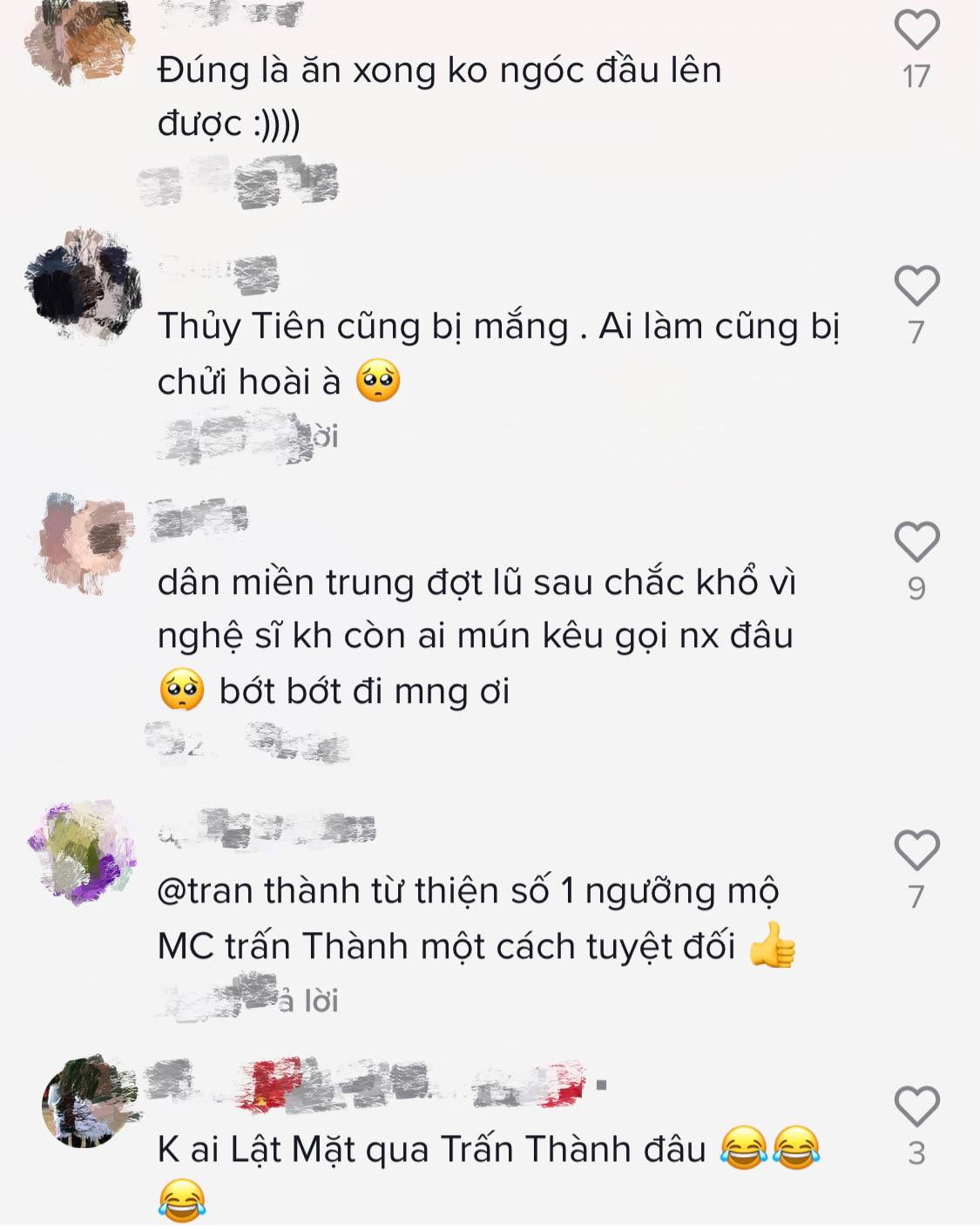 Trấn Thành cũng cho biết số tiền mình vận động quyên góp cũng như tiền từ thiện cá nhân thời điểm đó đã nhờ MC Đại Nghĩa làm đại diện, xuống tận nơi để phát quà từ thiện cho bà con miền Trung.