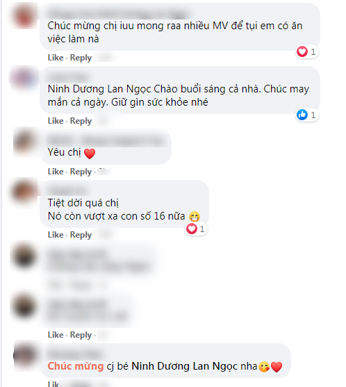 “Chúc mừng chị yêu, mong ra nhiều MV để tụi em có ăn việc làm nà”