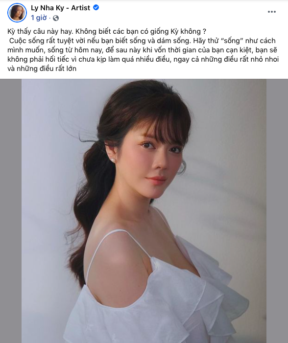 Bên cạnh những lời ngưỡng mộ, antifan dường như không chịu để yên cho nữ diễn viên. Cụ thể, vào tối ngày 30/8, Lý Nhã Kỳ tung ảnh concept “nàng thơ”, khoe cận nhan sắc tuổi 39 trên trang cá nhân. Cô còn đăng tải dòng trạng thái chiêm nghiệm về cuộc sống: “Kỳ thấy câu này hay. Không biết các bạn có giống Kỳ không? Cuộc sống rất tuyệt vời nếu bạn biết sống và dám sống. Hãy thử sống như cách mình muốn, sống từ hôm nay, để sau này khi vốn thời gian của bạn cạn kiệt, bạn sẽ không phải hối tiếc vì chưa kịp làm quá nhiều điều, ngay cả những điều rất nhỏ nhoi và những điều rất lớn.”