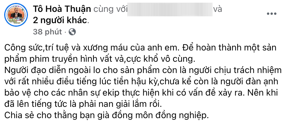 Trong đó, người đạo diễn ngoài vai trò quan trọng chịu trách nhiệm lo lắng cho sản phẩm từ khâu tiền kỳ đến hậu kỳ còn là người đàn anh bảo vệ nhân sự ê-kíp khi gặp vấn đề. Do đó, sự việc dẫn đến chuyện đạo diễn Quách Khoa Nam lên tiếng tố nhà sản xuất chứng tỏ vấn đề đã rất nan giải. Vì vậy, Quốc Thuận cũng muốn chia sẻ câu chuyện, ủng hộ đạo diễn, cũng là một đồng môn, đồng nghiệp với anh.