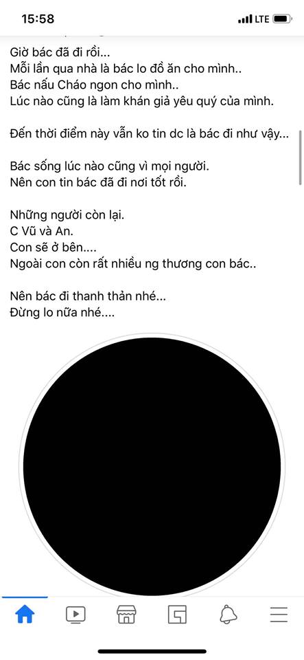 Bác sống lúc nào cũng vì mọi người, nên con tin bác đã đi nơi tốt rồi. Những người còn lại, chị Vũ, An và con sẽ luôn ở bên nhau. Ngoài con còn rất nhiều người thương con bác. Nên bác đi thanh thản nhé. Đừng lo nữa nhé....”