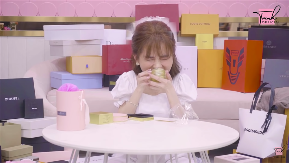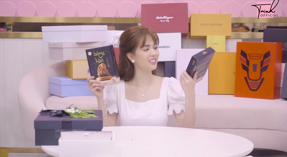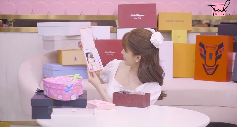 Cụ thể, trong clip đập hộp quà sinh nhật tròn 31 tuổi mới đây, “nữ hoàng nội y” đã bóc các hộp quà tặng đặc biệt gòm những món quà nhân dịp 8/3, Instagram tròn 5 triệu follow, quà nhận chức chủ tịch,… mà cô tự mua và được mọi người tặng.