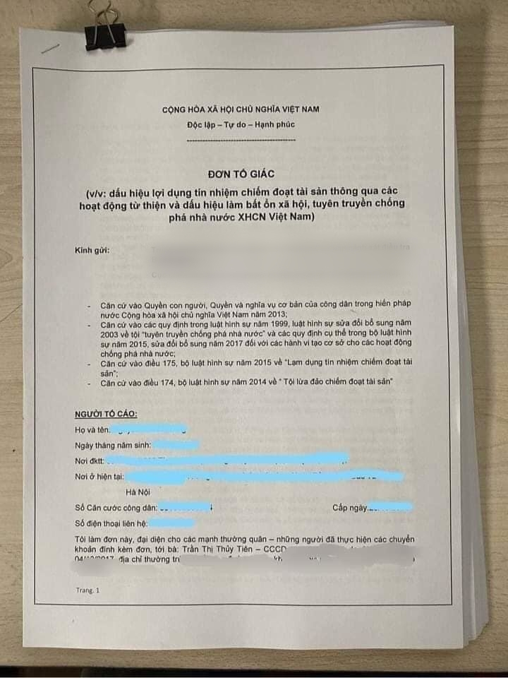 Một mạnh thường quân đệ đơn tố cáo Thủy Tiên có dấu hiệu chiếm đoạt tài sản.