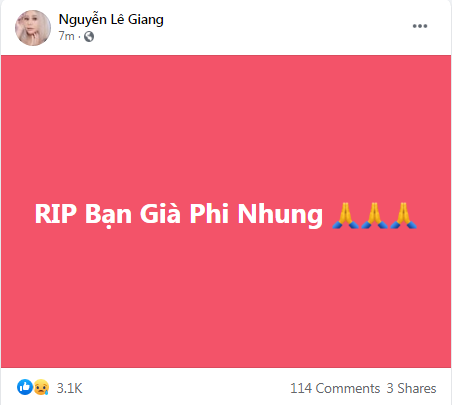 Ngay sau khi thông tin Phi Nhung qua đời được công bố, cả showbiz chấn động và không khỏi bàng hoàng. Hàng loạt sao Việt như Ngô Kiến Huy, Đông Nhi, NSƯT Hữu Quốc, Lê Giang,… đã đăng tải dòng trạng thái tiễn biệt nữ ca sĩ. Ai nấy đều không thể tin và vô cùng đau lòng trước sự ra đi của giọng ca “Bông Điên Điển”.