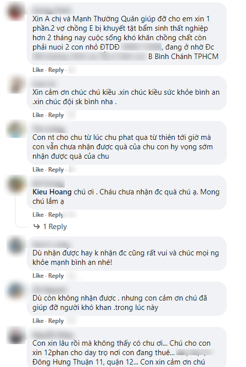 Ngay sau khi tiếp tục đưa ra thông báo, một số bộ phận CĐM vẫn bình luận mong muốn Hoàng Kiều có thể hỗ trợ gia đình họ. Nhiều người ở những khu vực khó khăn và vẫn chưa thể được hỗ trợ. Bên cạnh đó, CĐM cũng cảm ơn tấm lòng và hành động ý nghĩa của tỷ phú Hoàng Kiều cùng nhóm thiện nguyện của ông tại Việt Nam.