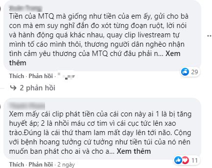 Nhiều netizen còn mỉa mai nữ ca sĩ và cho rằng liệu Thủy Tiên có đang lầm tưởng mệnh giá của mỗi tờ tiền là 1 triệu đồng hay không? Vì theo như đoạn clip được chia sẻ, rất nhiều người không được nhận đủ số tiền như đã thông báo trước đó.