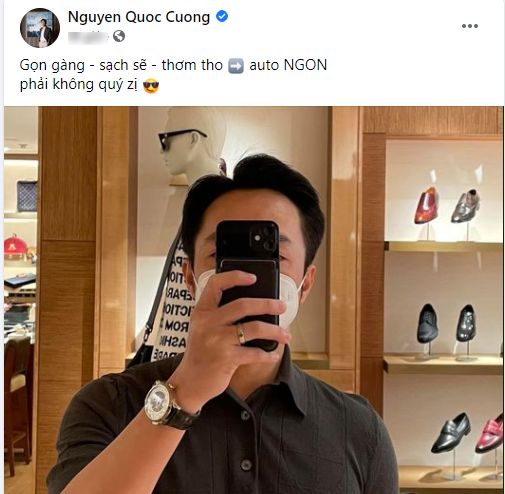 Bên cạnh đó cuộc sống của Cường Đôla và Đàm Thu Trang cũng nhận được nhiều sự quan tâm từ cư dân mạng. Mới đây, anh đã có màn “thả thính” công khai ngay trên mạng xã hội với hình ảnh bảnh bao, chải chuốt. Cụ thể, nam doanh nhân đăng tải hình ảnh ăn mặc gọn gàng với dòng cap “Gọn gàng - sạch sẽ - thơm tho auto NGON ,phải không quý zị”.