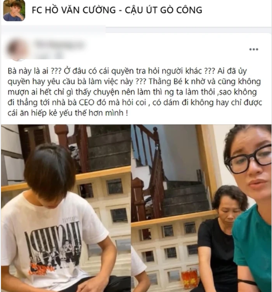 Đại diện FC của nam ca sĩ Hồ Văn Cường cũng đã chính thức lên tiếng về hành vi này của cô. Theo đó, phía đại diện của FC chia sẻ: “Cần phải chấm dứt một tình trạng vô cùng tai hại hết sức thản nhiên là việc người ta tung lên mạng các đoạn bắt ép ghi hình, hỏi đáp dồn dập những người thấp cổ bé họng. Ai, ai cho cho có quyền đó? Và phần lớn cộng đồng mạng hả hê, chia sẻ các đoạn ghi hình này và tỏ ra p.hẫn nộ như có quyền, có khả năng mạnh mẽ thực thi công lý đối với sự việc. Điều ấy cần phải được chấm dứt và thay đổi để bảo vệ con người, bảo vệ an ninh đối với con người…”