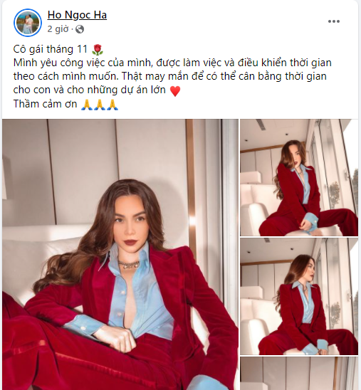 Mới đây, Hồ Ngọc Hà khiến dân tình chú ý khi tung loạt ảnh mới của mình, theo đó nữ ca sĩ diện một cây đồ đỏ nhung cùng phong cách xẻ sâu tại vòng 1. Hồ Ngọc Hà chọn cho mình lối make up đậm càng tôn lên vẻ sang chảnh của mình.