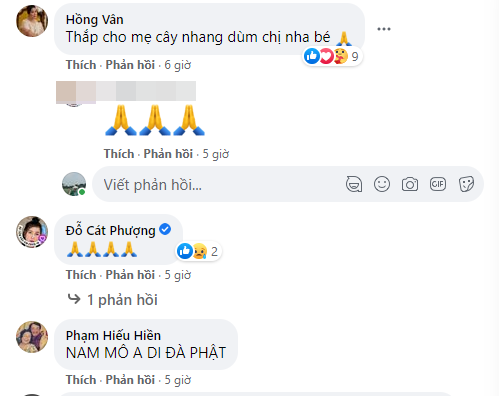 Dưới bài đăng của Trịnh Kim Chi, NSND Hồng Vân gửi lời động viên chia buồn: “Thắp cho mẹ cây nhang dùm chị nha bé”. Bên cạnh đó nhiều nghệ sĩ khác như Cát Phương, Hiếu Hiền, Vy Oanh,... cũng gửi lời động viên đến đàn chị thân thiết.
