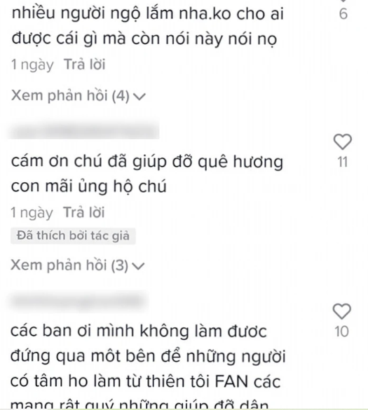 -Nhiều người ngộ lắm nha, không cho ai được cái gì mà còn nói này nói nọ.