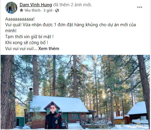 Theo chia sẻ của Đàm Vĩnh Hưng, anh vừa gặp được một ‘đối tác’ lớn trong dự án mới của mình và hiện tại vẫn chưa thể tiết lộ nhiều về cuộc làm ăn này. Tuy nhiên tin vui này khiến nam ca sĩ ‘đứng ngồi không yên’ và muốn thông báo ngay lập tức đến khán toàn thể khán giả để chia sẻ niềm vui. Ở dòng cuối cùng Đàm Vĩnh Hưng nhấn mạnh chữ ‘TIN’ như một lời cảm ơn đến những người vẫn luôn bên cạnh anh sau hàng loạt ồn ào xảy ra.