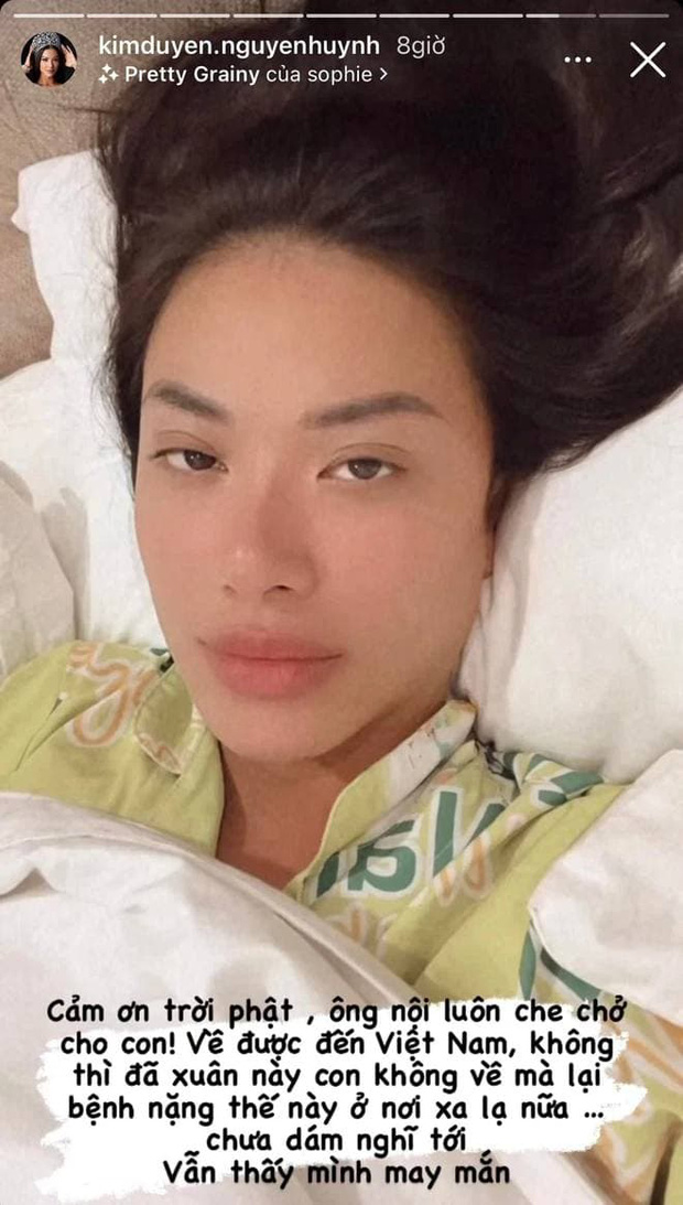 Sau đó cô tải hình ảnh que test nhanh và cho biết bản thân đang được uống thuốc điều trị và nghỉ ngơi nên sức khỏe đã ổn định hơn. Kim Duyên không quên nhắn nhủ và gửi lời cảm ơn đến tất cả mọi người vì đã quan tâm chăm soc cho sức khỏe của mình.