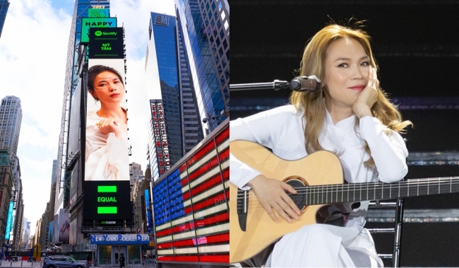 Cụ thể, trên Facebook cá nhân Mỹ Tâm nhanh chóng báo tin mừng đến với người hâm mộ. Nữ ca sĩ hào hứng chia sẻ: ‘Hình ảnh cô ấy vừa xuất hiện trên quảng trường Thời Đại (Times Square, New York City), nằm trong chiến dịch EQUAL của Spotify trong năm 2022 nhằm giúp tôn vinh tài năng âm nhạc của các nữ nghệ sĩ trên toàn thế giới.