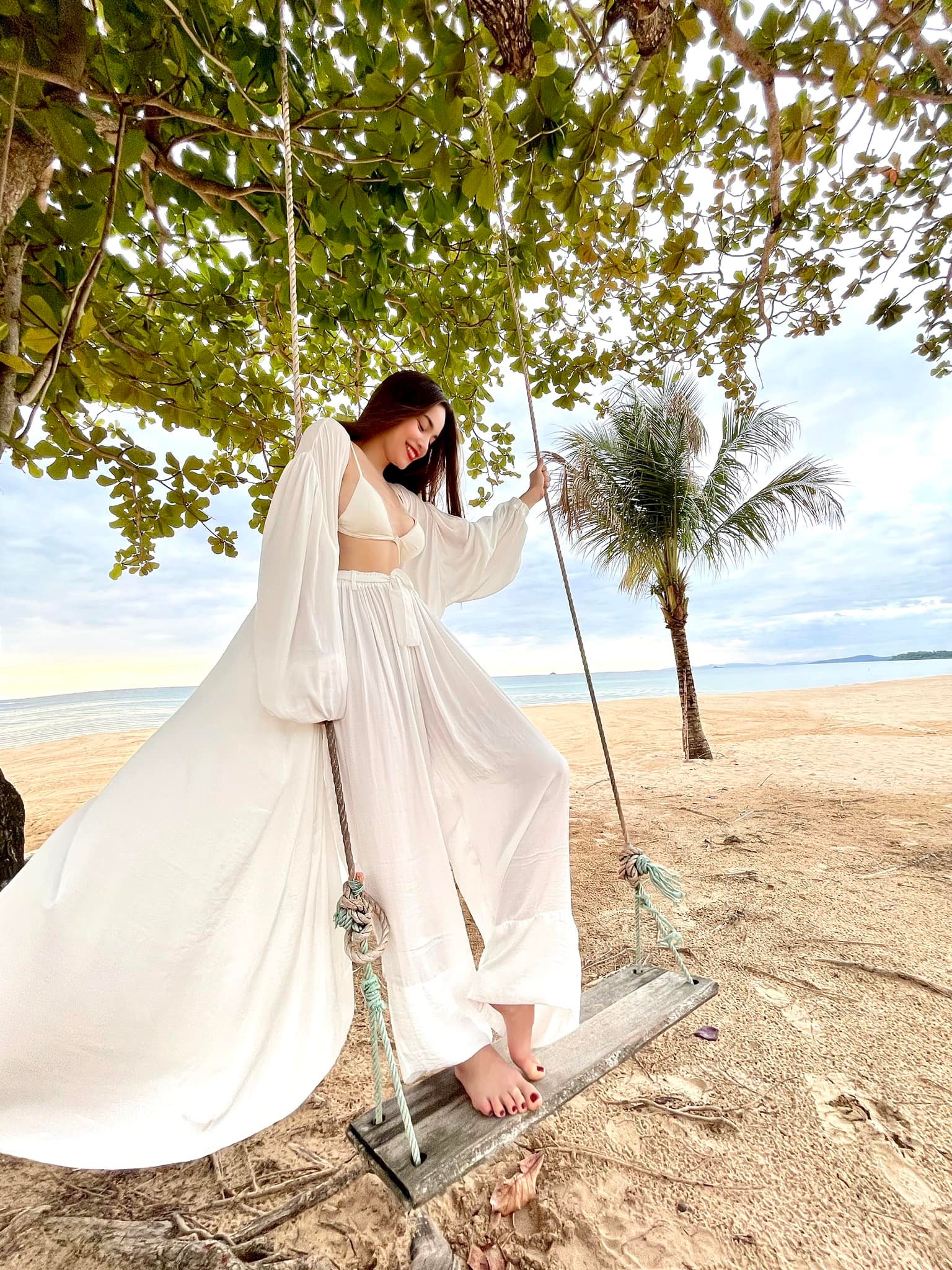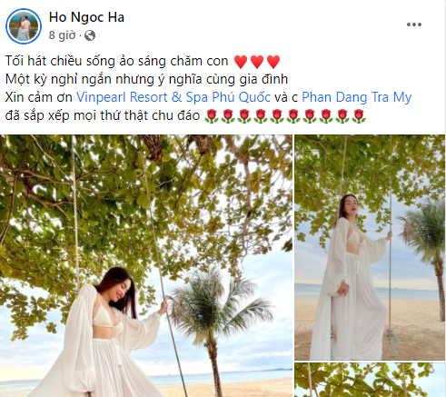 Theo đó Hồ Ngọc Hà đăng tải hình ảnh diện áo bikini kết hợp quần ống xuống và áo khoác trắng. Nữ ca sĩ khoe khéo được cặp ‘gò bồng đảo’ tràn viền của mình nhưng vẫn vô cùng tinh tế mà không hề phản cảm. Bên cạnh đó nhan sắc của bà mẹ bỉm sữa 3 con gây ngỡ ngàng cho người hâm mộ.
