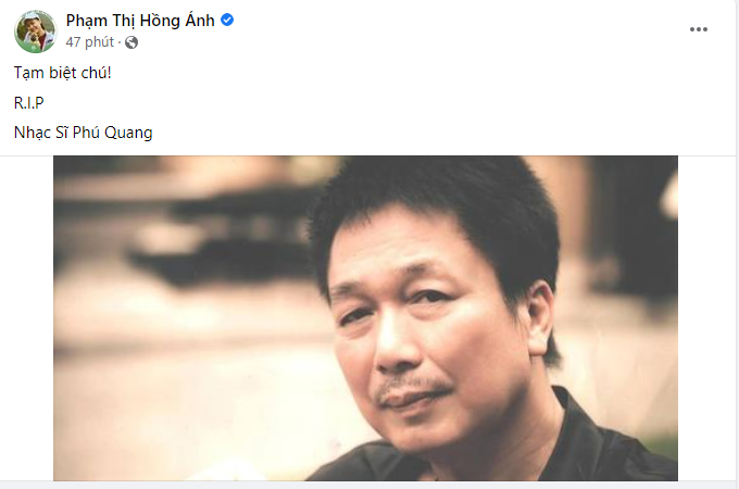 Hồng Ánh chia buồn khi nhận tin NS Phú Quang qua đời.