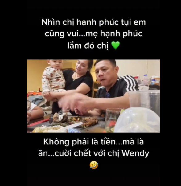 Đáng chú ý, bố ruột Wendy còn nhắc tới Phi Nhung một cách tình cảm, trang trọng nhất khi nói chuyện với các con. “Cũng mong là hôm nay những gì mà Wendy với Tom cho ba thì mẹ thông cảm vì mẹ trước giờ cứ đi ăn nhà hàng không hà”, bố ruột con gái Phi Nhung nói.
