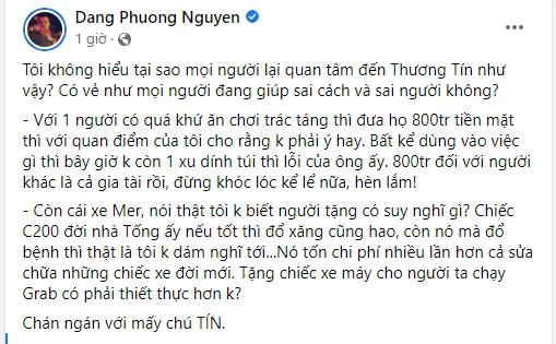 Chia sẻ thêm, bà Nguyễn Phương Hằng nói: “Thương Tín đã từng được công chúng cho 800 triệu rồi thì bản thân cần phải biết tự trọng”.
