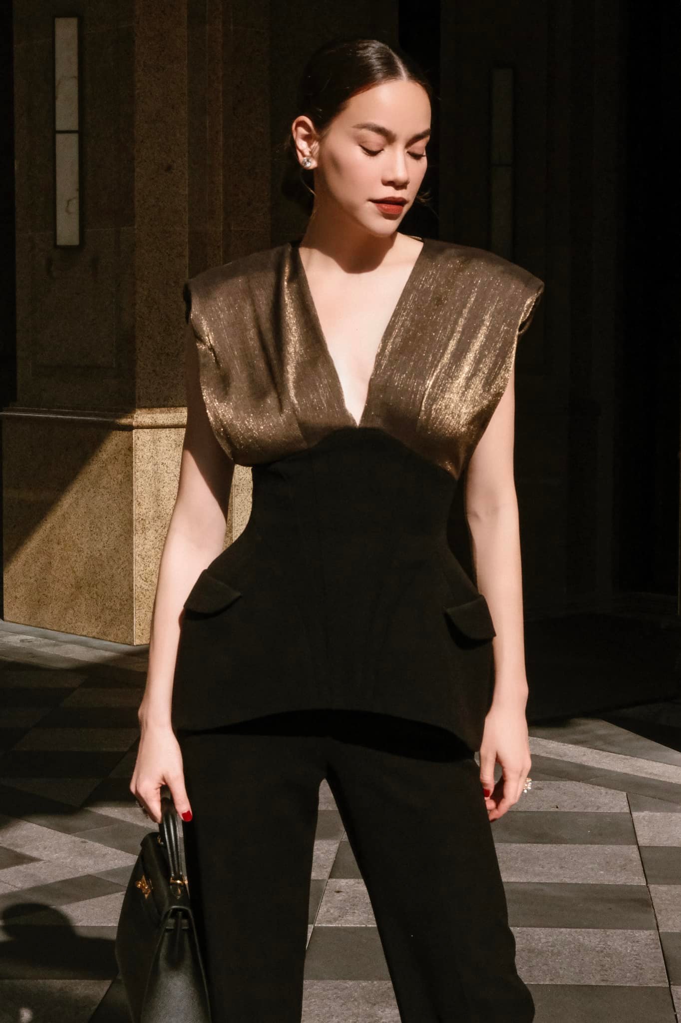 Được biết đây là hình ảnh trong ‘siêu phẩm’, một sự kết hợp mới từ thương hiệu của nữ ca sĩ Hồ Ngọc Hà. Trong shoot hình lần này, Hà Hồ diện cho mình bộ trang phục full đen với điểm nhấn là chiếc áo cắt xẻ phần ngực trở lên. Chiếc áo có thiết kế bó phần eo giúp cô nàng khoe được vòng eo con kiến. Bên cạnh đó tông màu chủ đạo cũng giúp cô nàng tạo cảm giác sang trọng khi xuất hiện trước đám đông.
