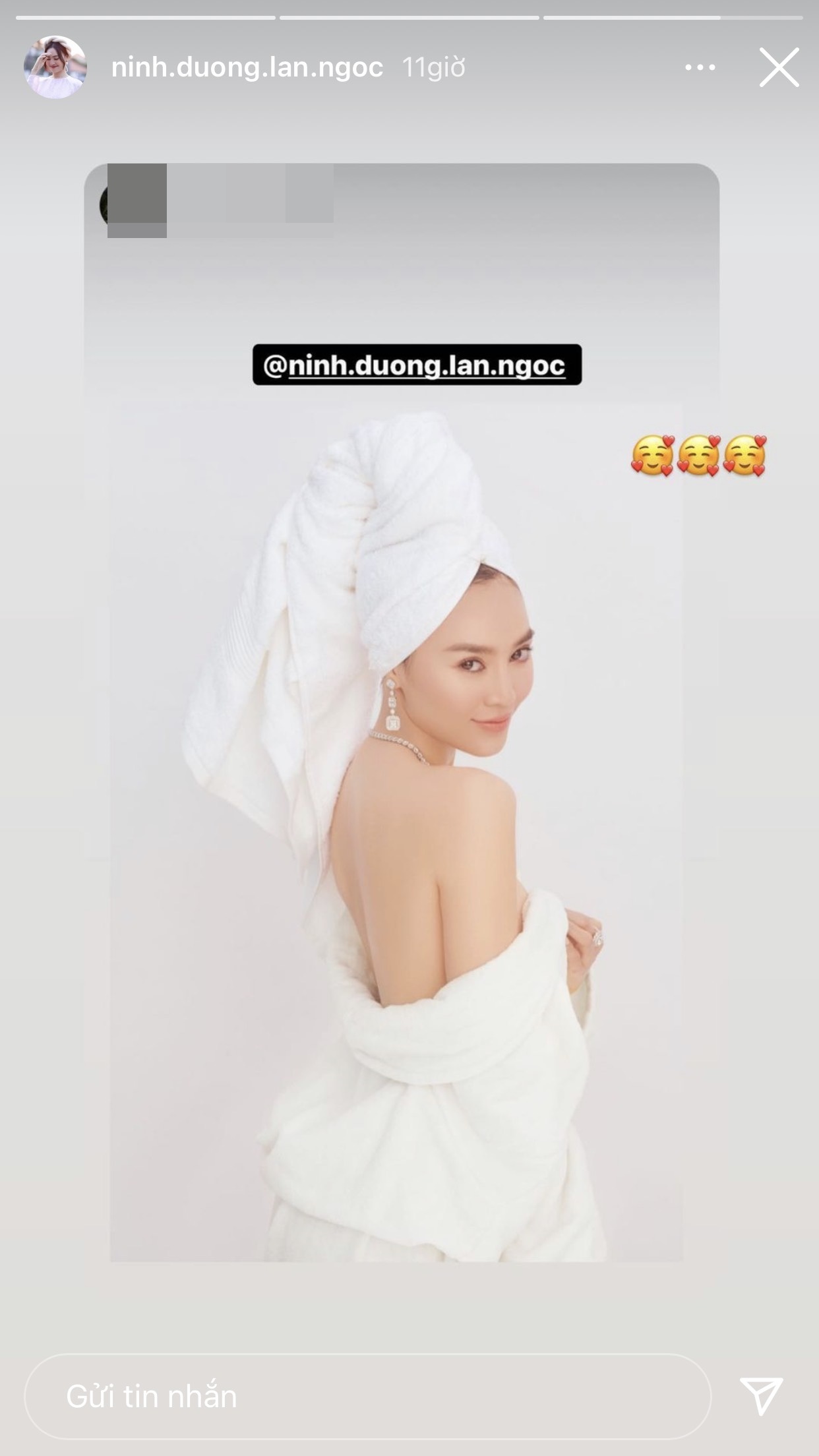 Theo đó, cô nàng đăng tải hình ảnh lộ toàn bộ phần vai trần quyến rũ. Bên cạnh đó hành động e ấp vòng 1 của nữ diễn viên cũng khiến nhiều người phải đỏ mặt khi xem. Chiếc khăn tắm được Lan Ngọc lựa chọn quấn quanh người vô cùng hờ hững.