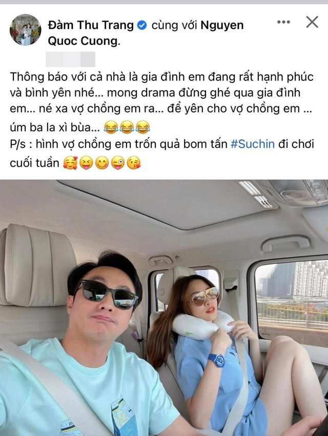 Bất ngờ bị kéo vào cuộc, vợ chồng Cường Đô La và Đàm Thu Trang đều lần lượt lên tiếng ngầm phủ nhận tin đồn thất thiệt. Bên cạnh đó, một người dùng mạng cũng tung hình ảnh được cho là chụp lén 2 vợ chồng giữa ‘tâm bão’.