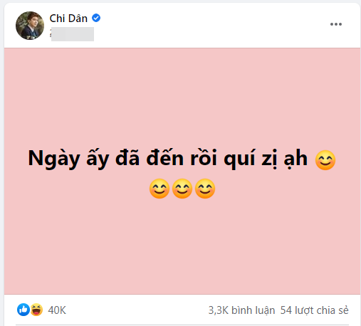 Trong khi dư luận đang bàn tán xôn xao thì nam ca sĩ Chi Dân lại gây bão khi bất ngờ đăng tải dòng trạng thái ẩn ý. Theo đó anh đăng tải một dòng trạng thái trên trang các nhân: “Ngày ấy đã đến rồi quý vị ạ”.