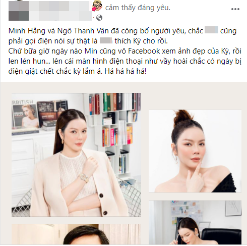 Không ngồi im khi các chị em liên tiếp báo tin vui, mới đây người hâm mộ bắt gặp Lý Nhã Kỳ có động thái lạ khi một đồng nghiệp công khai chuyện tình cảm với cô. Theo đó vị nam đồng nghiệp này đăng tải trên trang cá nhân: “Minh Hằng và Ngô Thanh Vân đã công bố người yêu, chắc Min cũng phải gọi điện nói sự thật là Min thích Kỳ cho rồi.