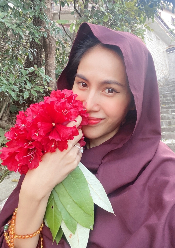 Thủy Tiên sang nước ngoài để hành hương hướng phật.