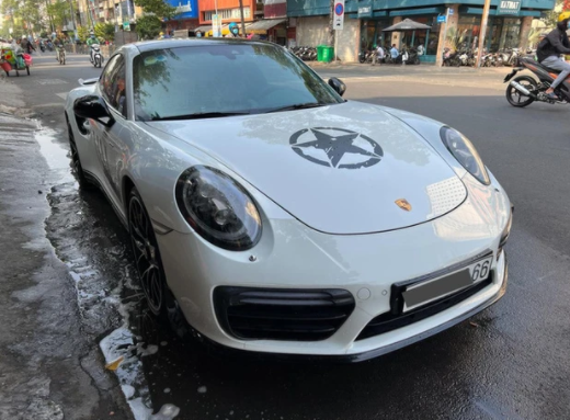 Trong lần xuất hiện cách đây không lâu, ông Đặng Lê Nguyên Vũ lại xuất hiện với một chiếc Porsche 911 Turbo S đến showroom kinh doanh xe hơi nhập khẩu có tiếng. Khác với chiếc xe trên, chiếc Porsche 911 này sở hữu ngoại thất màu trắng với chi tiết ngôi sao đen được in lên giữa xe.
