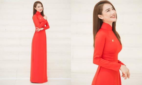 Lựa chọn cho mình chiếc áo dài màu đỏ, Nhã Phương khoe trọn nhan sắc rực rỡ trước ống kính. Dù đã hạ sinh một thiên thần nhỏ cho danh hài Trường Giang nhưng cô nàng vẫn giữ được nhan sắc tuổi trẻ cùng thân hình cân đối. Nhìn qua người bạn Hari Won, có thể Nhã Phương vẫn duy trì được thân hình tốt hơn bà xã Trấn Thành.