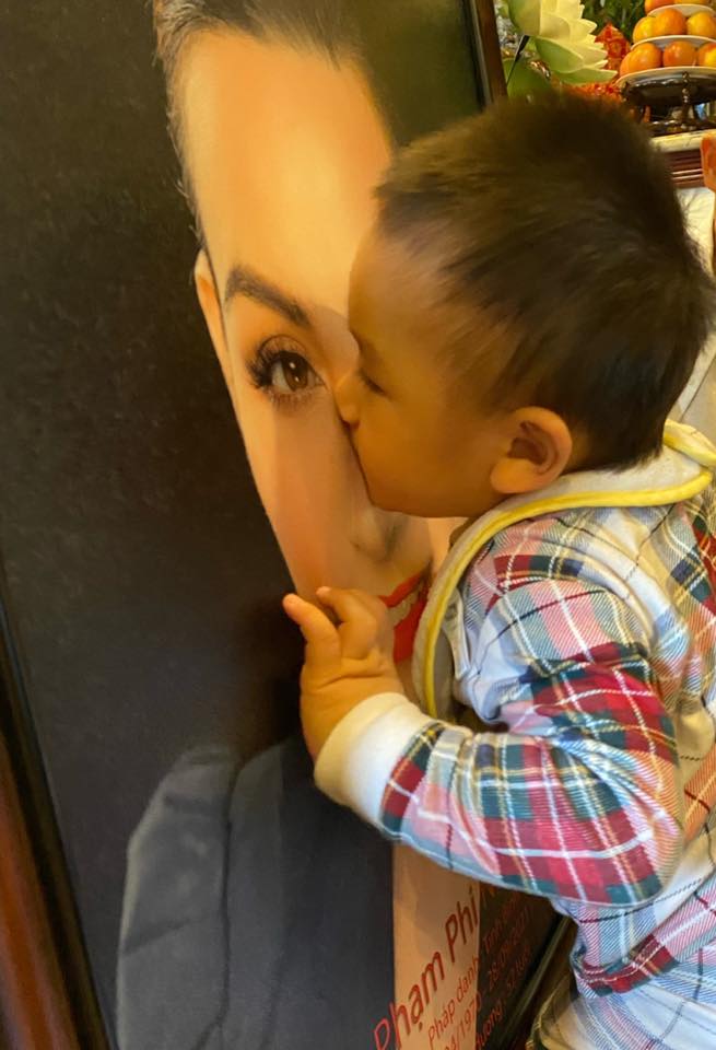 Đáng chú ý trong loạt ảnh được đăng tải, con trai của Wendy đã có hành động đặc biệt dành cho bà ngoại. Bé Nicholai - con trai thứ 2 của Wendy - cũng theo mẹ tới chùa thăm bà ngoại. Trong lúc Wendy và mọi người trang trí lại không gian thờ cúng Phi Nhung, nhóc tỳ chạy nhảy khắp nơi.