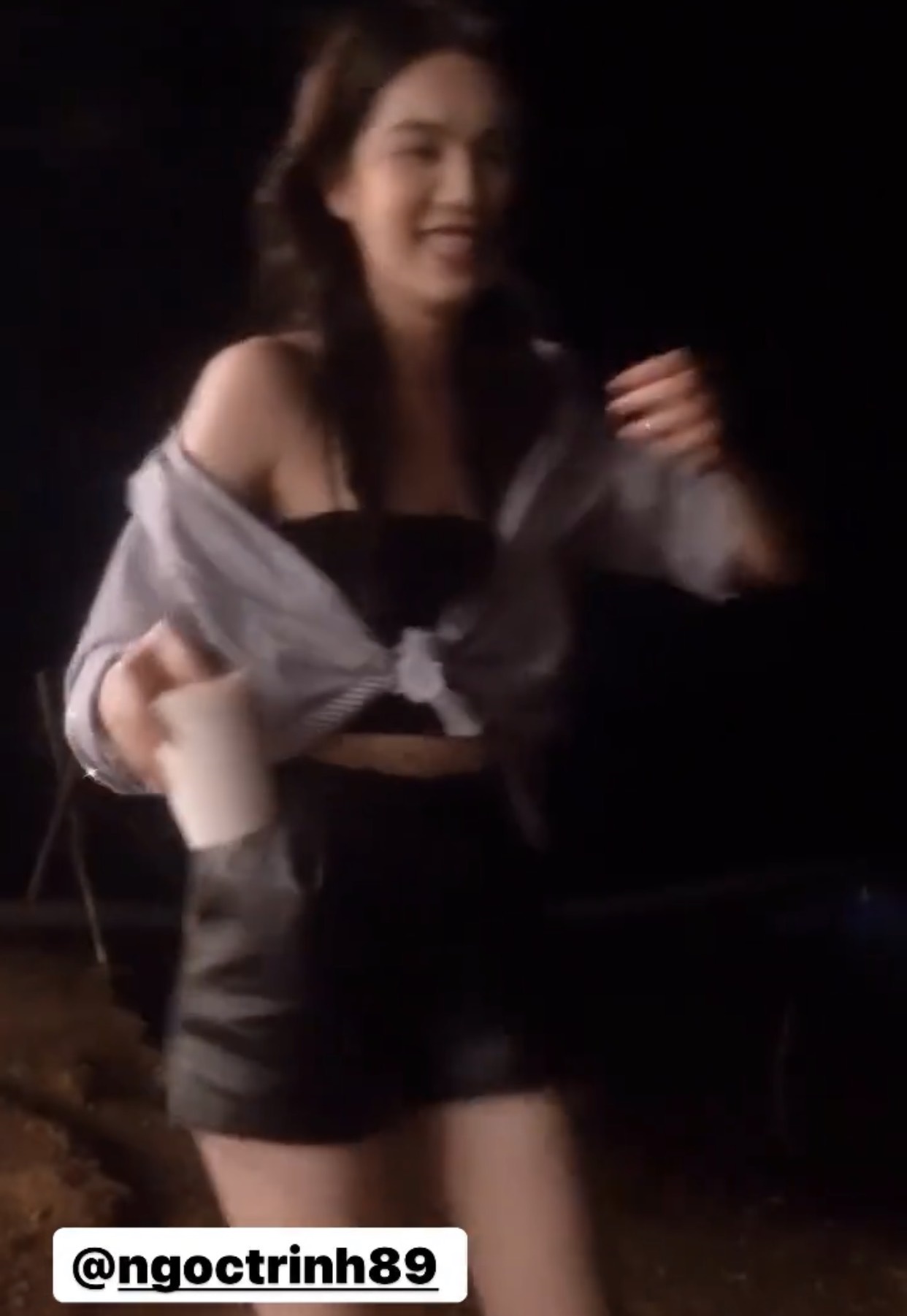 Trong đoạn hình ảnh được đăng tải, Ngọc Trinh diện áo cúp ngực màu đen chỉ đủ che chắn vòng 1, bên ngoài mẫu nội y khoác thêm một chiếc sơ mi kẻ sọc che chắn nhưng vẫn để lộ ra làn da trắng không tỳ vết. Cô nàng rất nhiệt tình với bạn bè khi đi giao lưu giữa 2 nhóm bàn bạn thân.