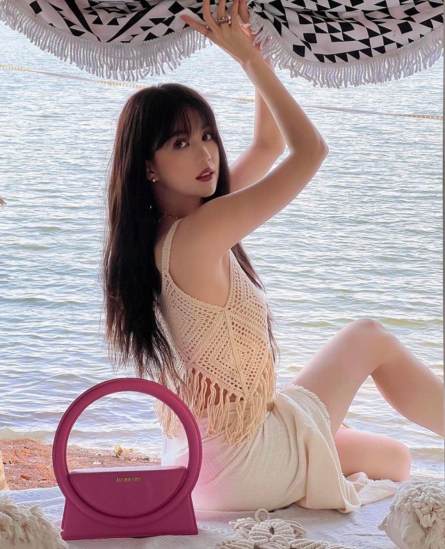 Trước đó Ngọc Trinh đã nhá hàng bằng một vài bộ ảnh trên nick Facebook. Ngọc Trinh “lên đồ” với outfit vừa năng động cá tính lại không kém phần gợi cảm, cuốn hút. Chọn chiếc áo croptop kết hợp quần short, cô nàng để lộ vòng eo “con kiến” trứ danh cùng đôi chân dài miên man khiến dân tình xuýt xoa. Để tổng thể không nhạt nhòa, Ngọc Trinh kết hợp phụ kiện là túi xách cỡ lớn đến từ thương hiệu Chanel với chiếc mũ rộng vành có tone màu đen sang trọng.